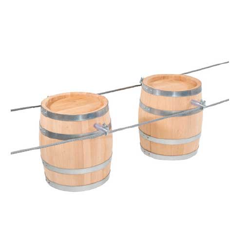 Installed on two wire ropes. The distance between the holes is 60 cm. Size of one barrel: 40 cm