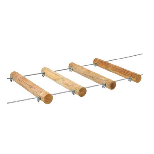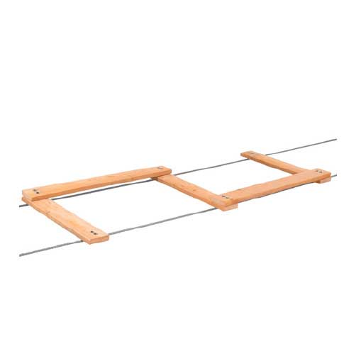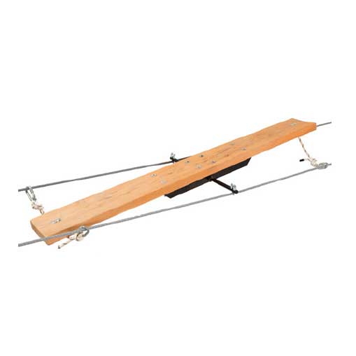 Installed on two wire ropes. The distance between the holes is 60 cm. Made of larch (mélèze) wood. Length of scale: max 250 cm